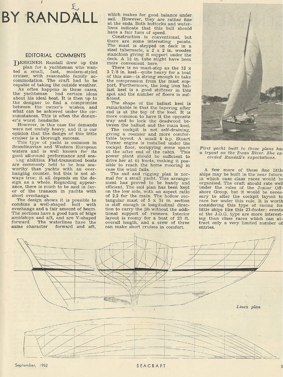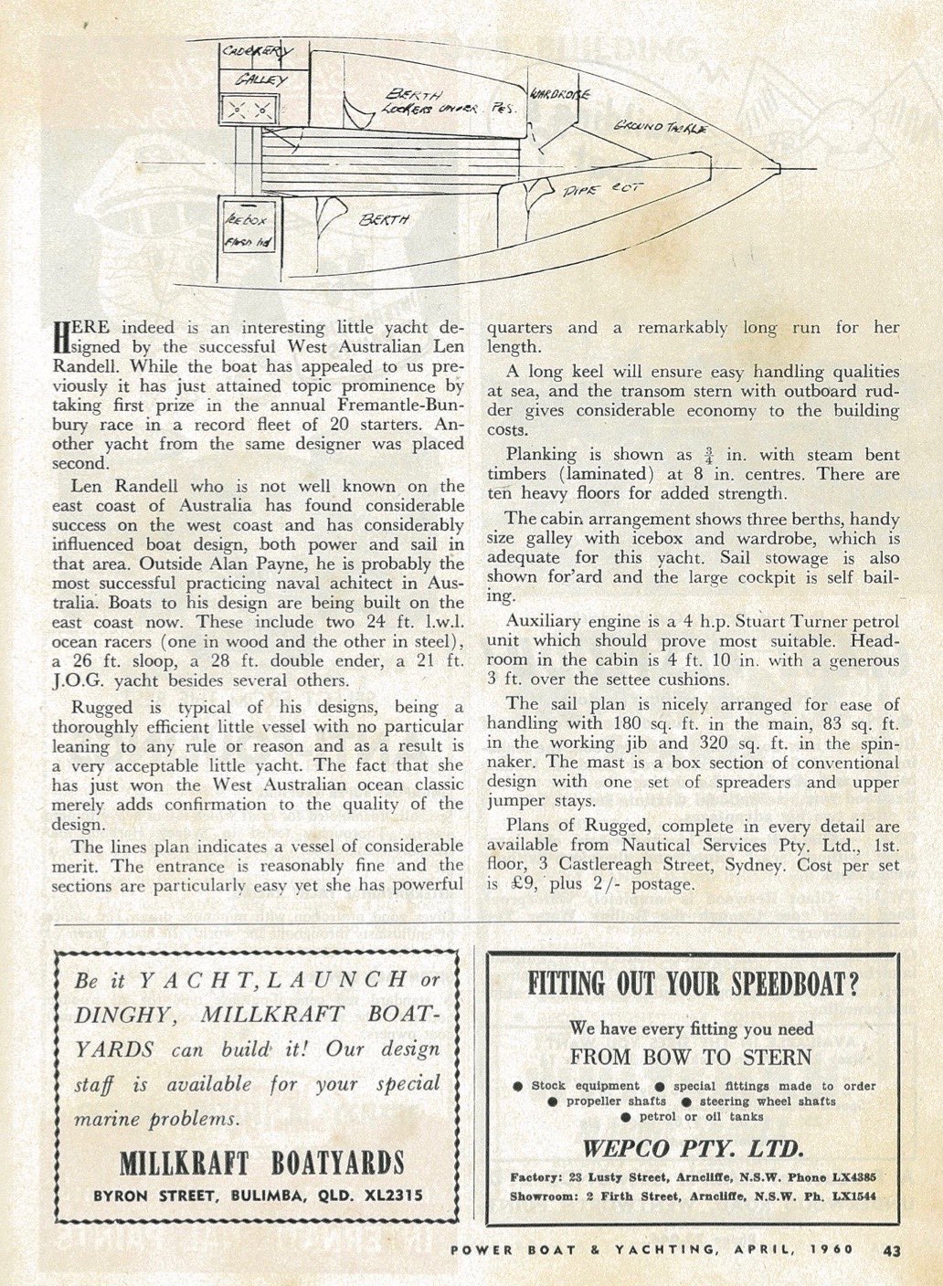 The 1952 Seacraft magazine review of Len Randell's Rugged design