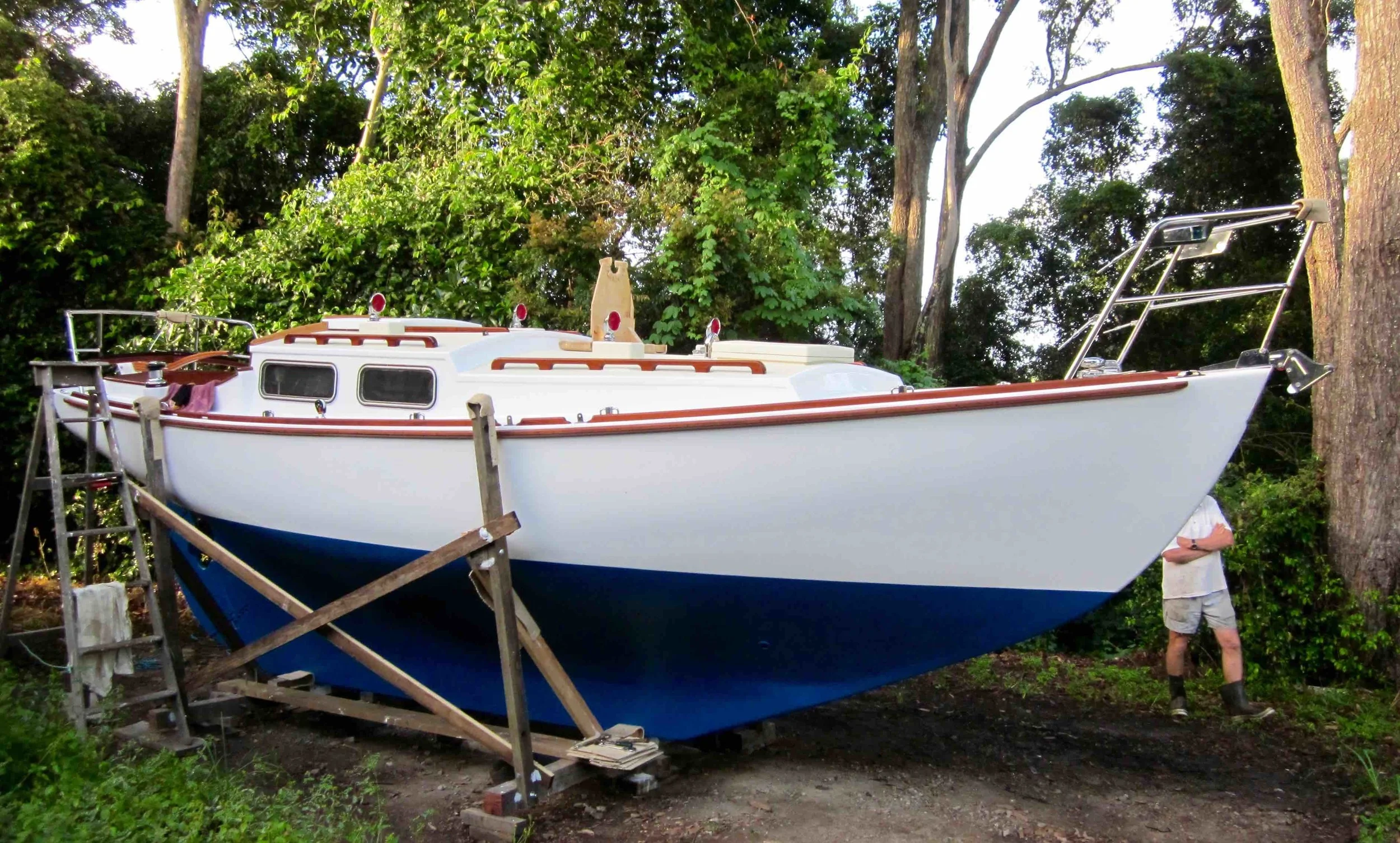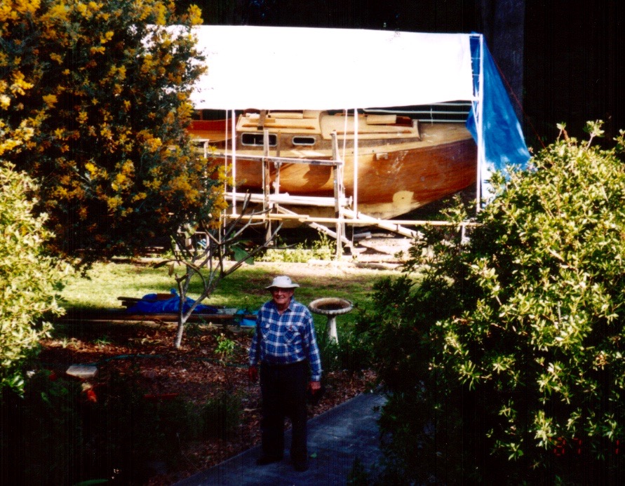 It was just a hull, steam bent ribs, timber hull with a deck, the cabin was made, no interior, just bare and that’s how it stayed till he passed away. In the meantime, the boat was shipped from Sydney where he started building it, in Cronulla up to Lismore where we bought a farm after he retired and then it was shipped up there in 1976 and then it stayed in a shed for 20 odd years and then they decided to move down to Yamba so the boat was in shipped down to Yamba where it was in a sort of a tarpaulin tent.