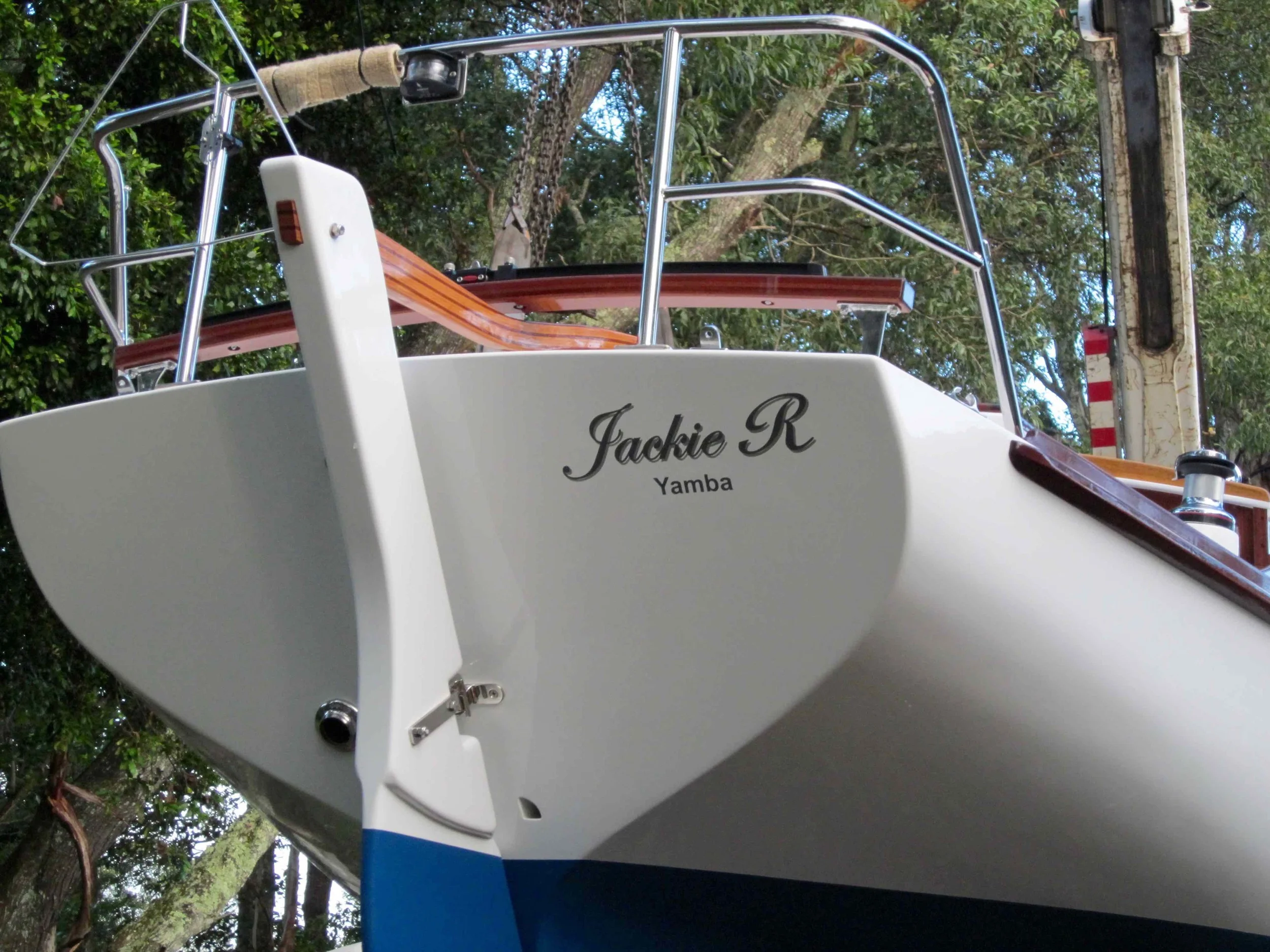 ANDREW RANDELL: I think she looks beautiful. Sweet lines, very traditional. I haven’t changed any of the design at all, it’s built as per the plan and I’ve probably tried to strike a medium between easy to maintain and functionality. It’s very traditional, she has the wooden mast that was designed for her. All the fittings that dad bought. He was even still buying fittings before he died. The strange part about that I guess is that he labeled everything, probably knowing that I was going to finish it, so he put all these little labels on the things tied with strings saying, “This goes there and here and there,” and all that sort of thing.