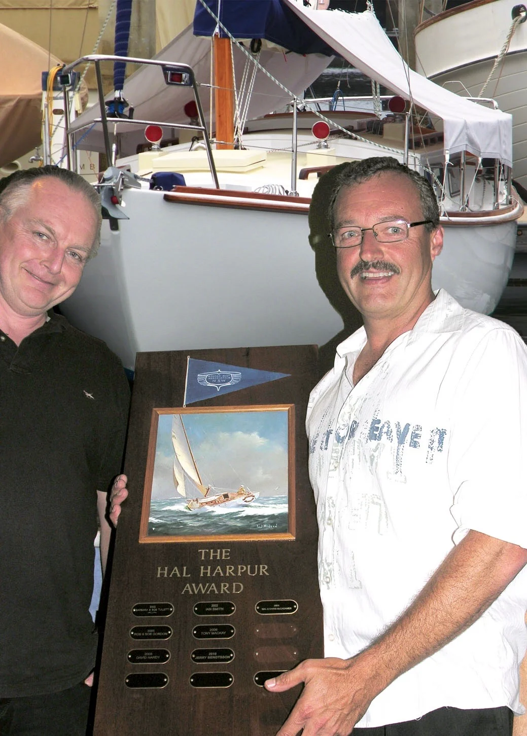 We’re going to retrace that story today and really the story of what turned out to be a 48 year project in total and the Hal Harpur award that Andrew received is awarded each year to a person who has best contributed to the New South Wales Wooden Boat Association’s objectives of encouraging the retention of wooden boat building skills and the preservation of historical wooden boats and artefacts. Quite a mouthful to explain the objectives.