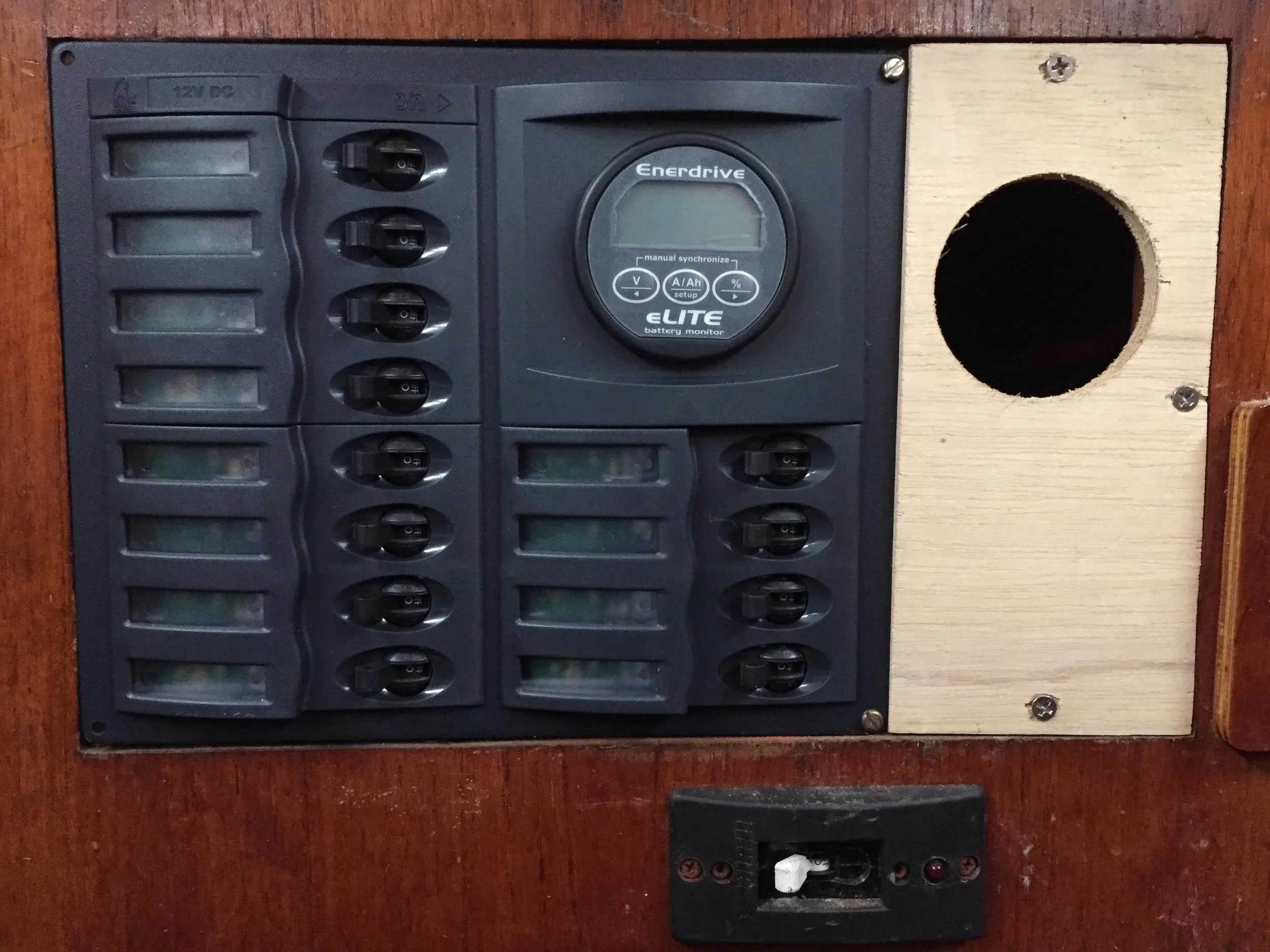 Andy Lamont: I have put in a new switch panel, which you can see underneath the stairs. I have got to tidy that up, and then I have got to replace my battery tie down systems. There are existing battery tie down systems in place, but I wouldn’t like the boat to be upside down and have to trust these, as they are a little bit dodgy. I have got all new instruments, as when I bought the boat it came with some really old B&G instruments that were made in 1976.
